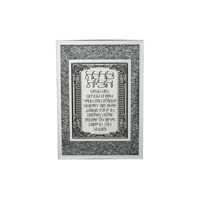 Sa plaque métallique argentée, finement gravée en hébreu, reflète la lumière avec élégance, tandis que le fond en briques blanches évoque la pureté et la stabilité du foyer. Chaque détail de ce cadre a été pensé pour unir esthétique et spiritualité.