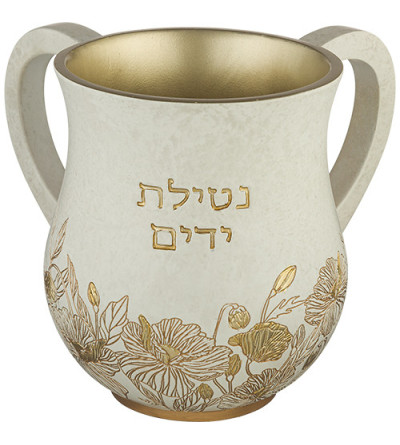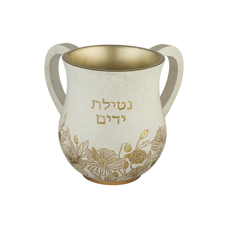 Plongez dans l’alliance de tradition et élégance avec ce Keli de Netilat Yadayim en polyresin de 14 cm. Blanc cassé avec un ornement floral doré, il allie beauté, spiritualité et praticité, idéal pour l’ablution des mains quotidienne ou comme cadeau raffiné pour toute occasion.