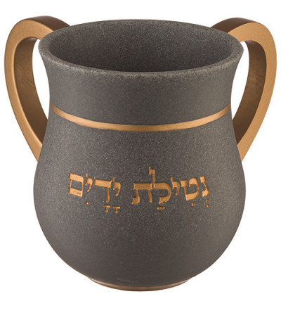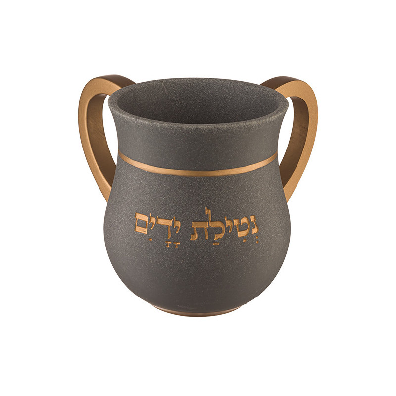 Apportez élégance et tradition à vos rituels avec ce Keli de Netilat Yadayim en polyresin de 14 cm, couleur ciment. Ses anses et l’inscription dorée en hébreu ajoutent raffinement et spiritualité, idéal pour l’ablution quotidienne des mains ou comme cadeau raffiné pour toute occasion.