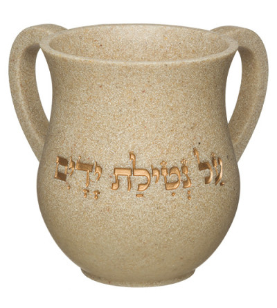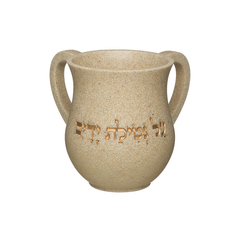 Ce Keli de Netilat Yadayim en polyresin de 14 cm, couleur crème avec inscription dorée, allie tradition, élégance et praticité. Léger mais robuste (0,66 kg), il est facile à manipuler lors de l’ablution des mains, même pour les enfants, tout en garantissant une durabilité optimale.