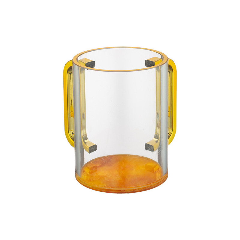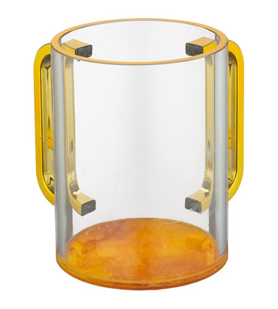 Ce Keli de Netilat Yadayim en acrylique transparent avec anses dorées allie modernité et pureté. Léger, résistant et élégant, il apporte une touche lumineuse à chaque rituel d’ablution. Parfait pour un usage quotidien ou en cadeau Judaica raffiné.