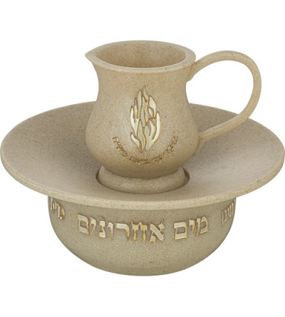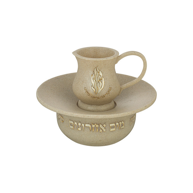 Apportez élégance et tradition à vos rituels avec ce Maim Aharonim en polyresin de couleur beige.
