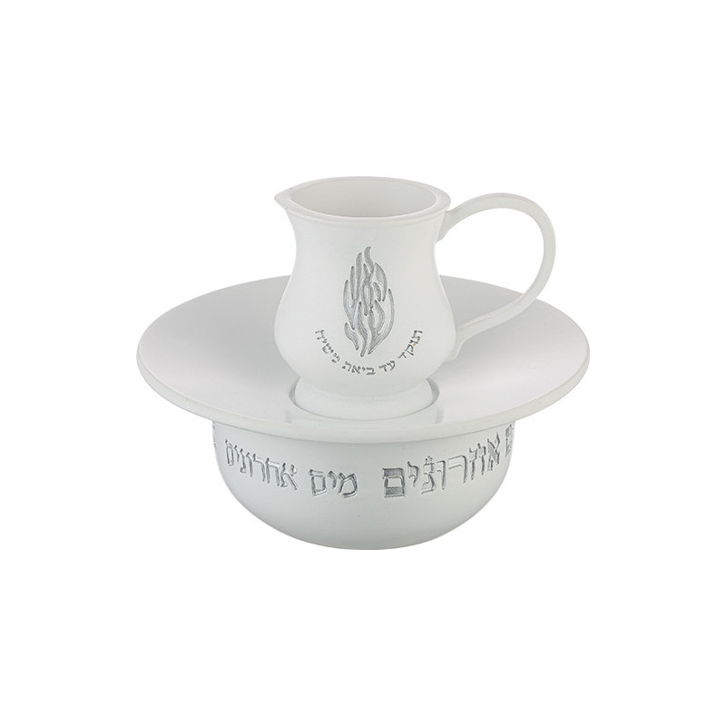 Apportez élégance et tradition à vos rituels avec ce Maim Aharonim en polyresin blanc.
