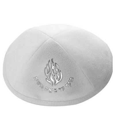 Kippa blanche en suédine douce de 19 cm, ornée d’un logo 3D argenté “HaEsh Sheli” Flamme Breslev et d’un emplacement pour pince. Élégante et confortable, elle allie tradition et modernité. Parfaite pour les prières, le Shabbat ou les grandes occasions, elle assure un maintien discret et raffiné.