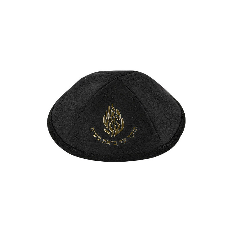 Kippa noire en suédine douce de 19 cm, décorée d’un logo 3D doré en forme de flamme Breslev et d’un emplacement prévu pour pince. Élégante, moderne et confortable, elle incarne la sobriété et la spiritualité, parfaite pour le Shabbat, les fêtes ou les événements communautaires.