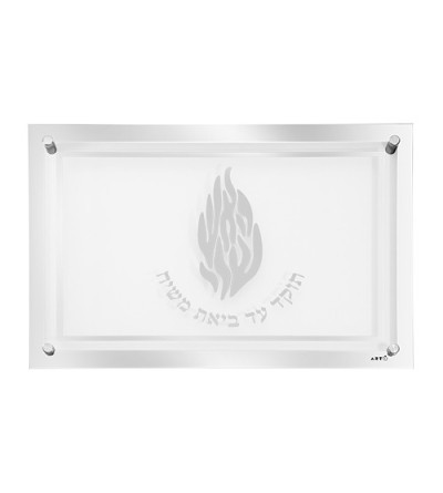 Plateau à pain en verre 45×30 cm, décoré d’une flamme Breslev au centre. Une pièce raffinée qui apporte une touche spirituelle et lumineuse à la table de Chabbat.