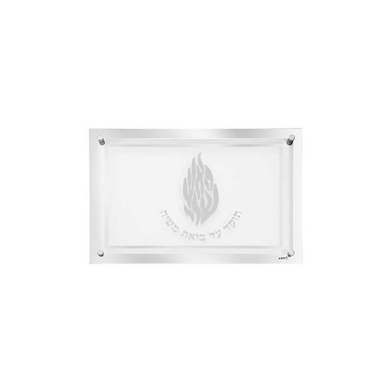 Plateau à pain de Chabbat en verre avec Flamme Breslev