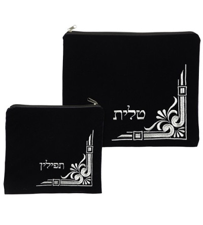 Chaque pochette est soigneusement brodée de son inscription correspondante — Talit sur la grande pochette et Tefilin sur la petite — pour une identification simple et élégante.