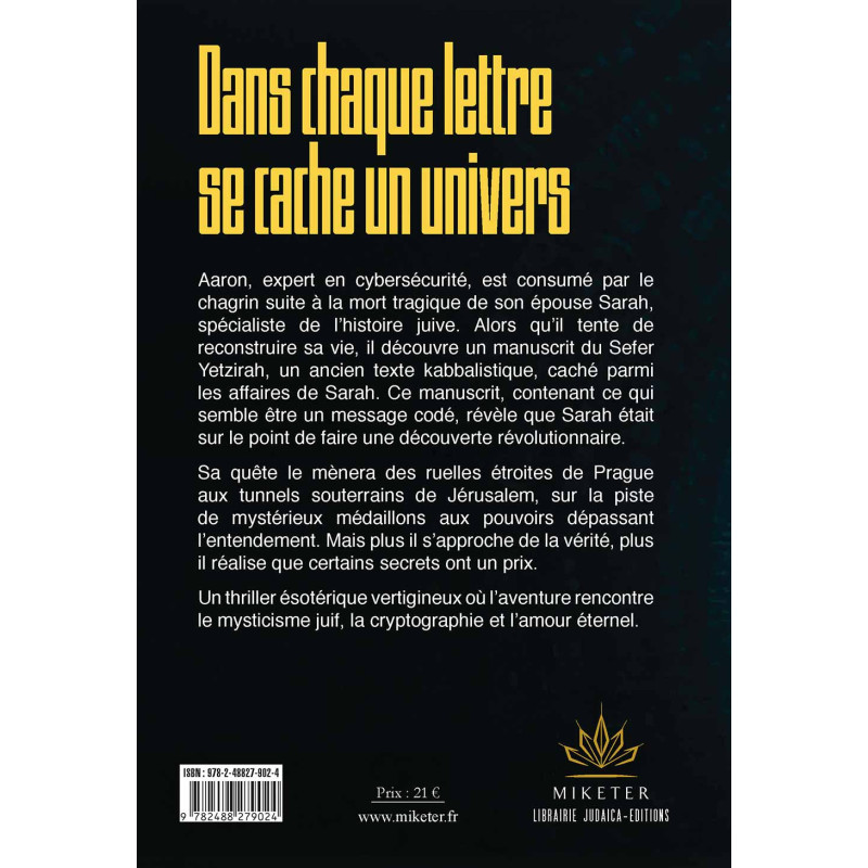 Aaron, expert en cybersécurité, est consumé par le chagrin suite à la mort tragique de son épouse Sarah, spécialiste de l’histoire juive. Alors qu’il tente de reconstruire sa vie, il découvre un manuscrit du Sefer Yetzirah, un ancien texte kabbalistique, caché parmi les affaires de Sarah. Ce manuscrit, contenant ce qui semble être un message codé, révèle que Sarah était sur le point de faire une découverte révolutionnaire.