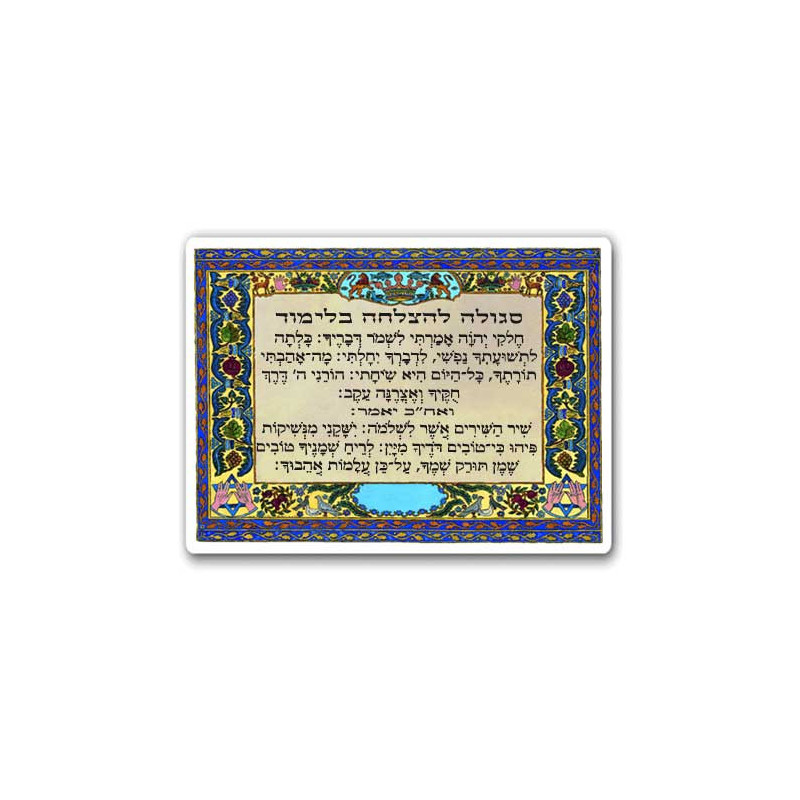 La סגולה להצלחה בלימוד est une carte spirituelle dédiée à la réussite dans l’étude, qu’il s’agisse de l’apprentissage de la Torah, de textes religieux ou d’études générales. Elle contient un texte en hébreu, formulé comme une demande de bénédiction pour la compréhension, la mémoire et la persévérance.