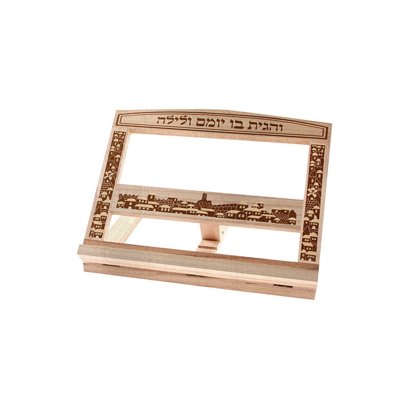 Apportez tradition et spiritualité à vos moments d’étude avec ce shtender en bois naturel. Orné de l’inscription hébraïque "Ve'hagita" et d’un décor représentant Jérusalem, il constitue un support de livre pratique et élégant pour vos prières et études.