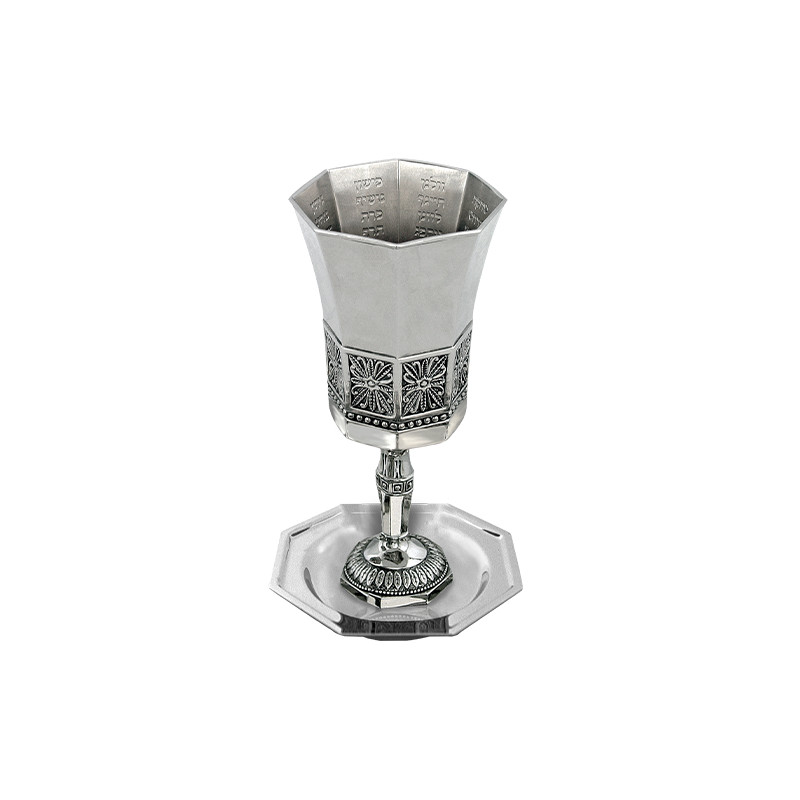 Ce verre de Kiddouch en nickel, orné du motif des fleuves bibliques, associe tradition et élégance. Idéal pour le Chabbat et les fêtes juives.